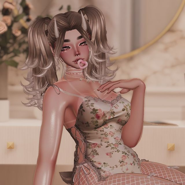 CLOTHING: / Top and Cardigan by Cringy / Skirt by flexuh / Jeans by Zinpia / Heels by VapeQ / Harness and Bodysuit by Foolystuffz / Donut by Shuucheri / Necklace by Mynk / Post-it by Honeylab and The Lost Kitten / Garters by Amboolents / Fishnets by Saikura / Bra and Panties by HoloExe / Ears and Tail by VIX / Dress and Top by Sleepy / Glasses by Befana / Horns by KOLD