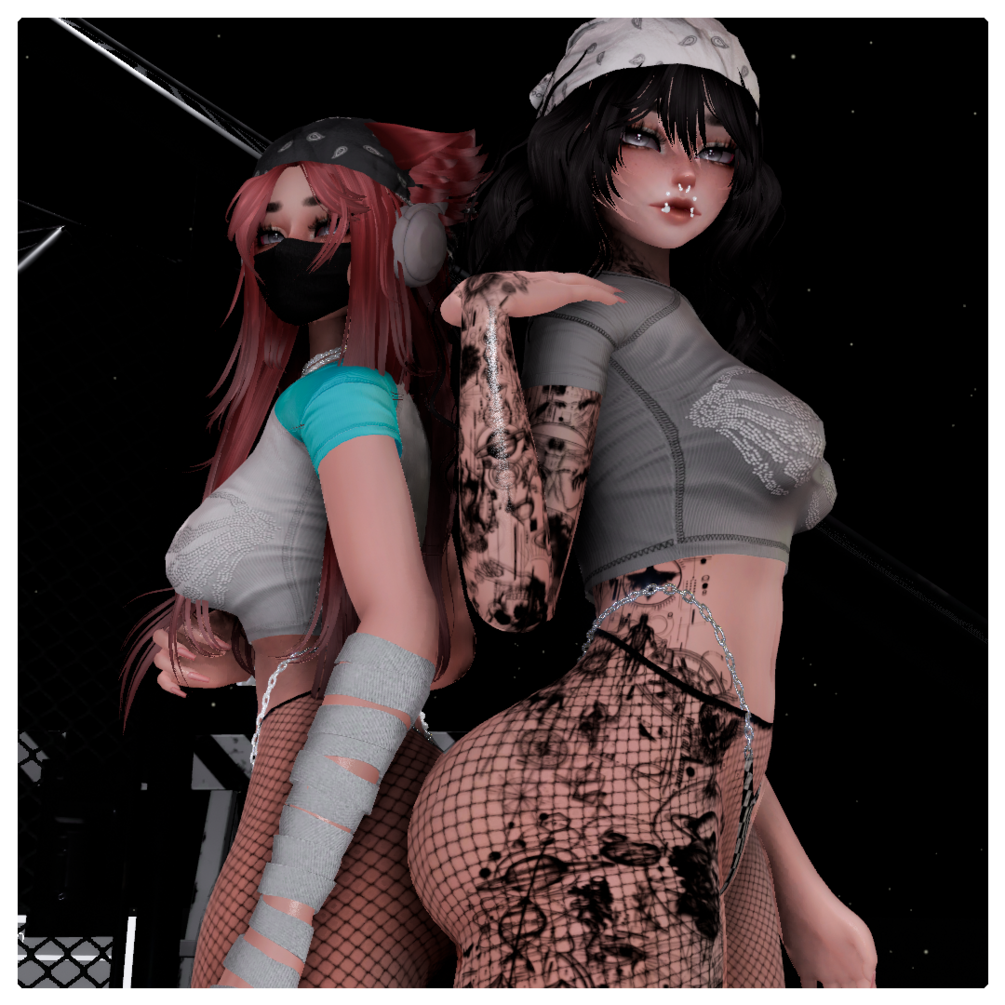 HEAD by Sivka / BODY by Zinpia / Head Texture and Body Texture and Sweat by miing, YingYangVR, Maddiee / Hair 1 2 3 4 by Saikura / Ears by Nikkiepng/ Bandana by Hayweee / Beanie by Vutha / Mask by iterrorized / Hoodie and Sweatpants by KingShai69/ Sporty Bra by Studio Mung / Jacket by Sadge / Jersey Top by Shizuki / Bite Top by Aika / TShirt by Hoeyume / Tank Top by Hayweee / Shoes by Yuuichi / Booty Shorts by Cybermami / Bra and Panties by Peachanas / Fishnets by Saikura / Headphones by Kri / RIPPED JEANS by Saikura / Sporty Shorts by Weeeby/ Necklace by Violet Puppy / Gym Bag by Tsuzen / Can by Drippy Pasta / Socks by Plaz / Slides by not Sache / Sporty Underwear by flexuh